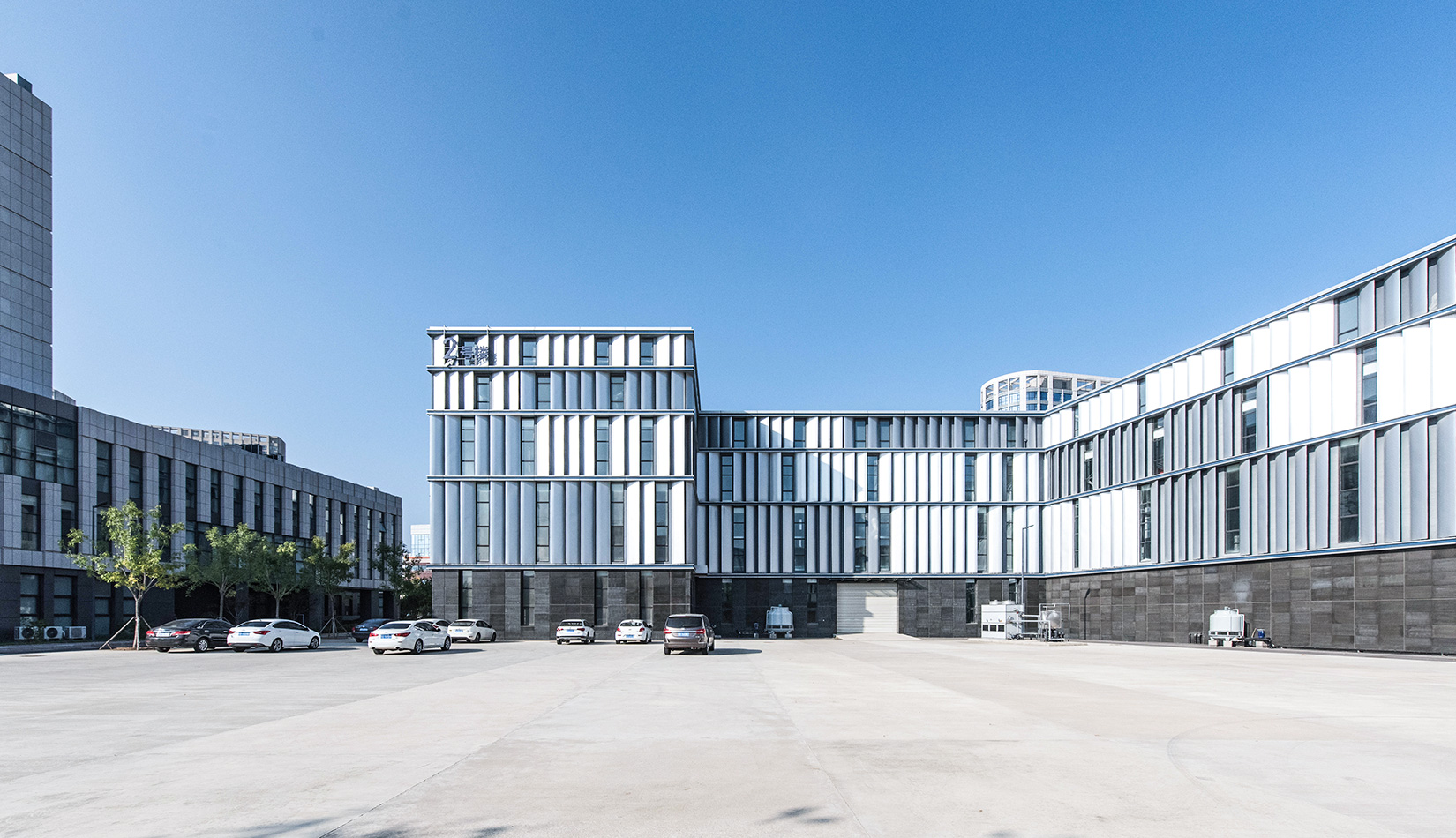 建筑主要采用白色基調(diào),以減輕日曬,部分裙房采用大理石面磚,以增加建筑的莊重性。