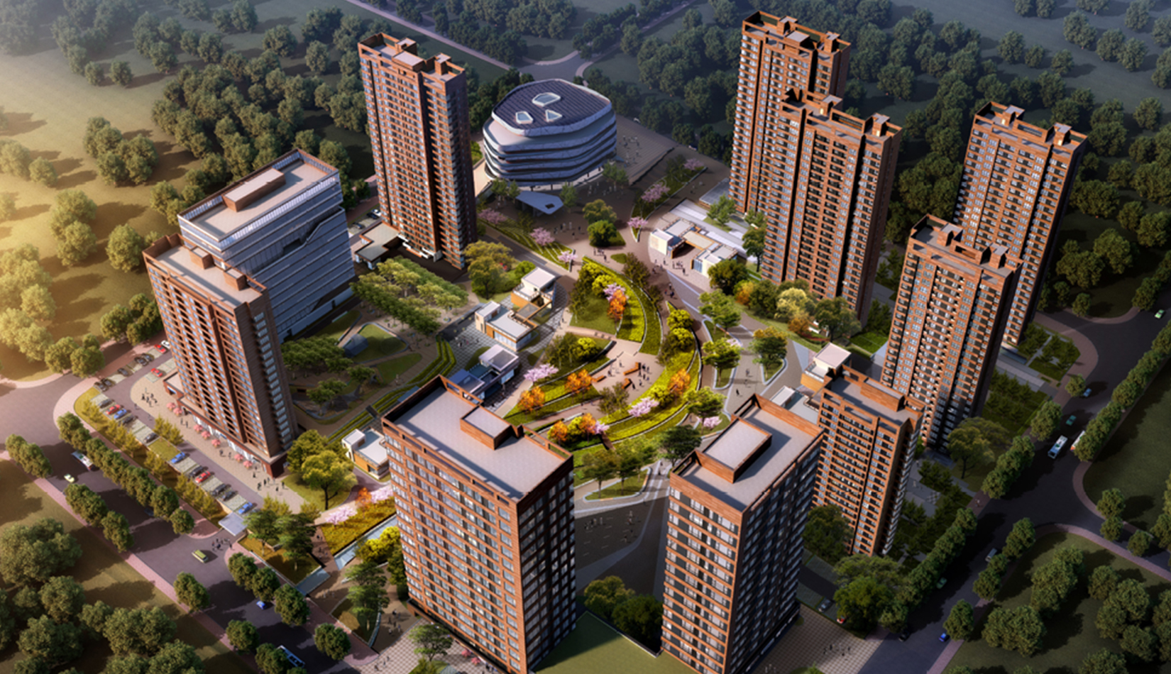 規(guī)劃布局在現(xiàn)有景觀基礎(chǔ)上進(jìn)行延伸,在重要景觀帶上設(shè)置公共功能,造型與現(xiàn)有德國(guó)中心呼應(yīng),靠近中間廣場(chǎng)的混合住宅設(shè)計(jì)中融入綠色理念,既達(dá)到景觀帶到建筑群組的滲透,又達(dá)到建筑內(nèi)部的滲透,真正做到人與自然融合,建立了一條“城市紐帶”,利用周邊現(xiàn)有資源(河洛埠水庫(kù)),通過(guò)連橋、綠地和廣場(chǎng)將不同功能,不同高度的公共區(qū)域串聯(lián)起來(lái),從而形成一個(gè)結(jié)構(gòu)明晰,功能復(fù)合又互通互聯(lián)的文化交流城。