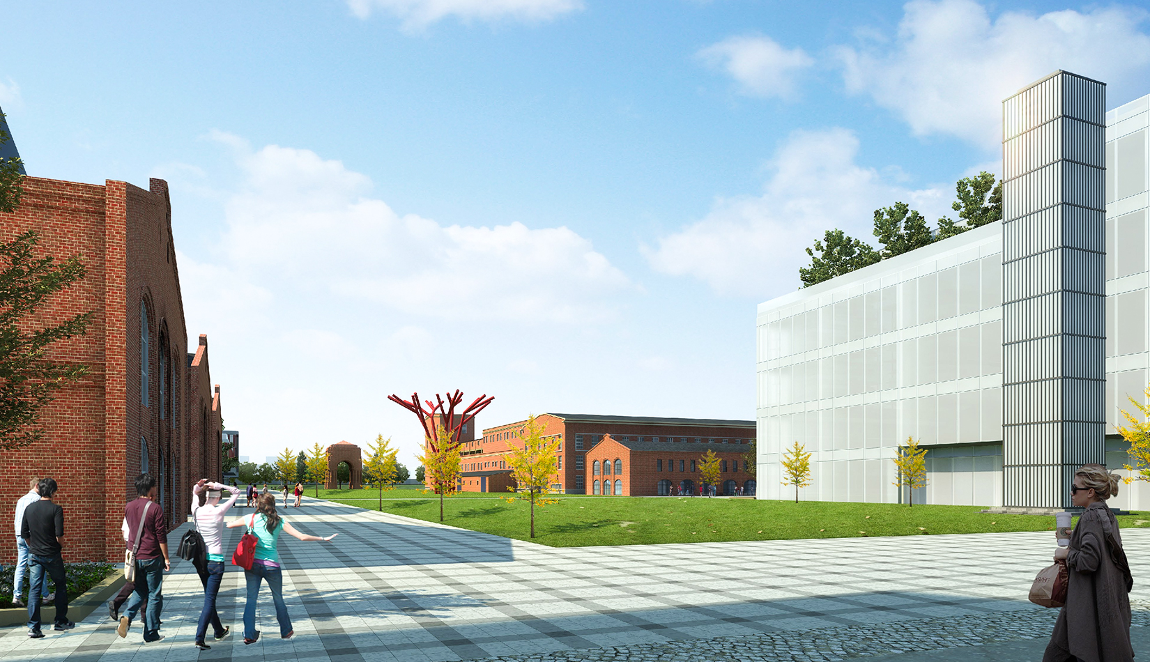 利用原有廠房中具有代表性的部分作為重要的展示節(jié)點,形成具有標志性的工業(yè)遺跡風(fēng)貌,與新建建筑的現(xiàn)代感相交融,打造具有時空連續(xù)性與對立性的感官體驗。