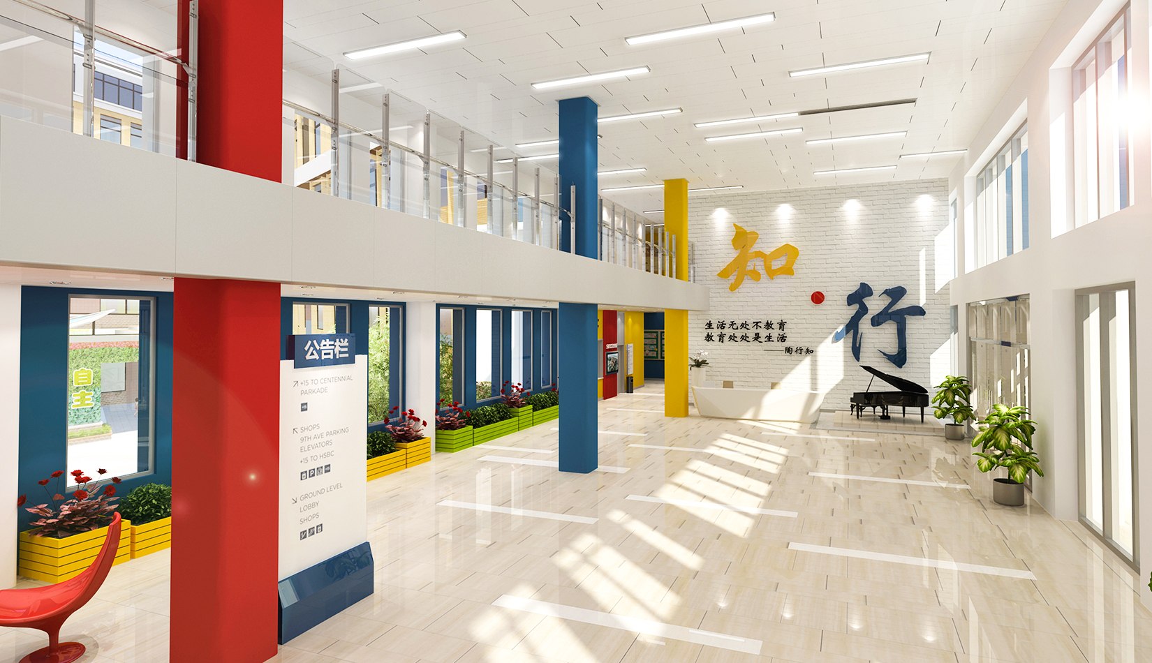 設(shè)計(jì)追求空間設(shè)計(jì)的前瞻性,深入揣摩材質(zhì)、工藝與造型之間的關(guān)系,力圖體現(xiàn)現(xiàn)代化小學(xué)空間輪廓;設(shè)計(jì)堅(jiān)持以“人”為本的校訓(xùn),強(qiáng)調(diào)人性化設(shè)計(jì),因此注重生態(tài)、綠色、節(jié)能、環(huán)保、文化空間功能,輔以材質(zhì)、色彩的表達(dá),為寧夏路小學(xué)營(yíng)造出了人性的、功能的、標(biāo)志化效果,為孩子創(chuàng)造-一個(gè)良好的視覺(jué)環(huán)境和心理健康發(fā)展的氛圍。