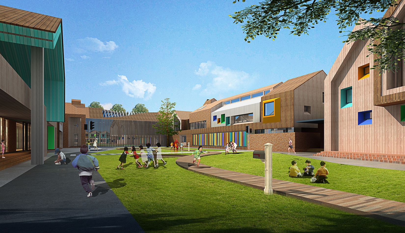 該項(xiàng)目設(shè)計(jì)以“陽(yáng)關(guān)小鎮(zhèn)”為設(shè)計(jì)概念,采用“城鎮(zhèn)”規(guī)劃布局,通過引入街道、廣場(chǎng)、庭院等元素,將校園空間打造為小鎮(zhèn)場(chǎng)景,讓學(xué)生感受城市氛圍及生活氣息。