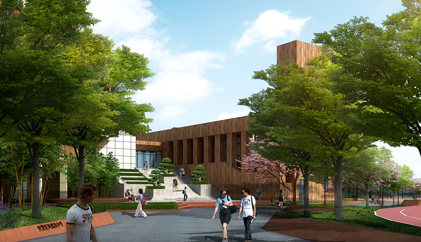以鳳凰為設(shè)計思想來源,建筑為骨,環(huán)境為翎,合理組織前廣場的空間結(jié)構(gòu)。