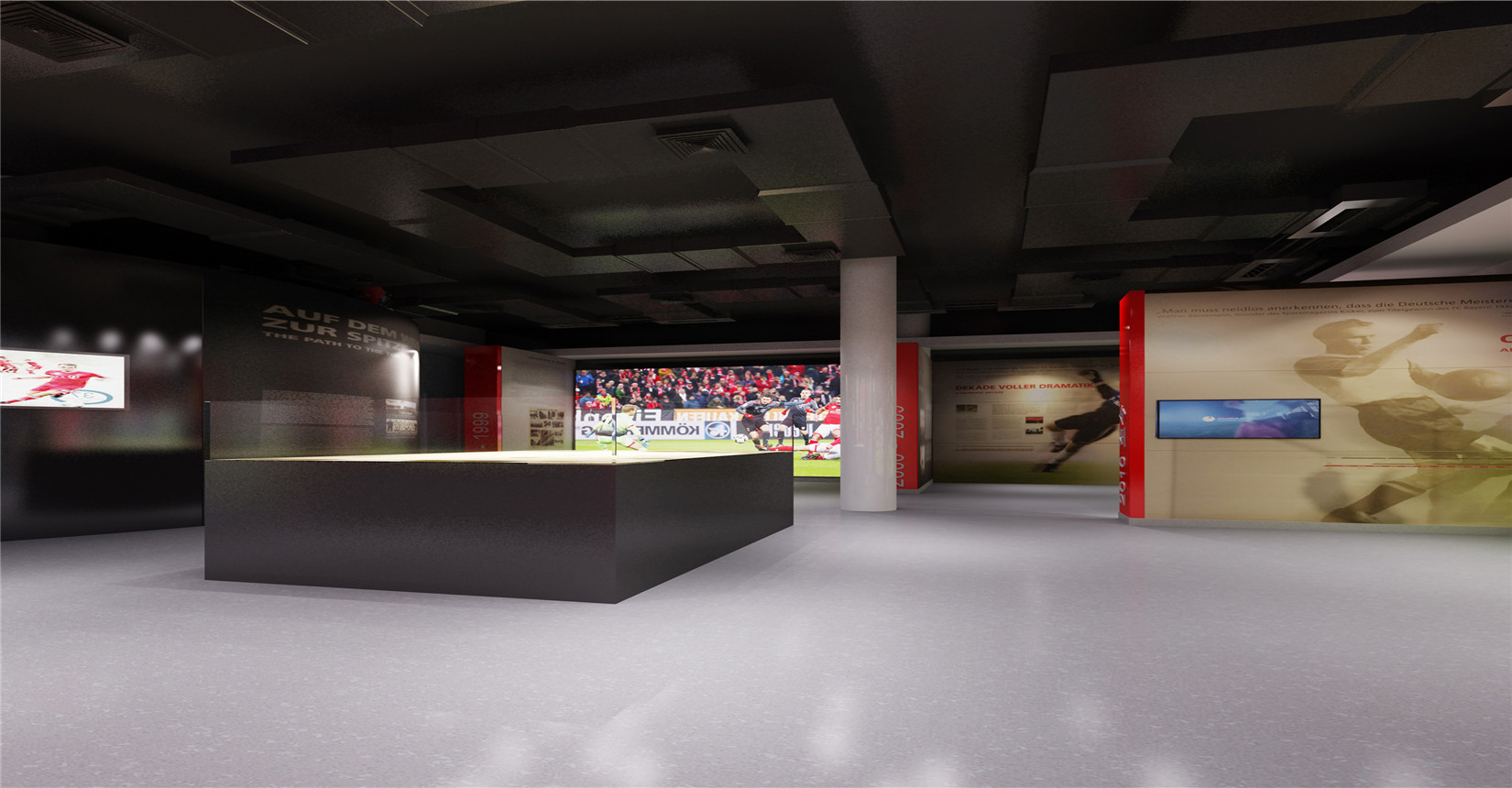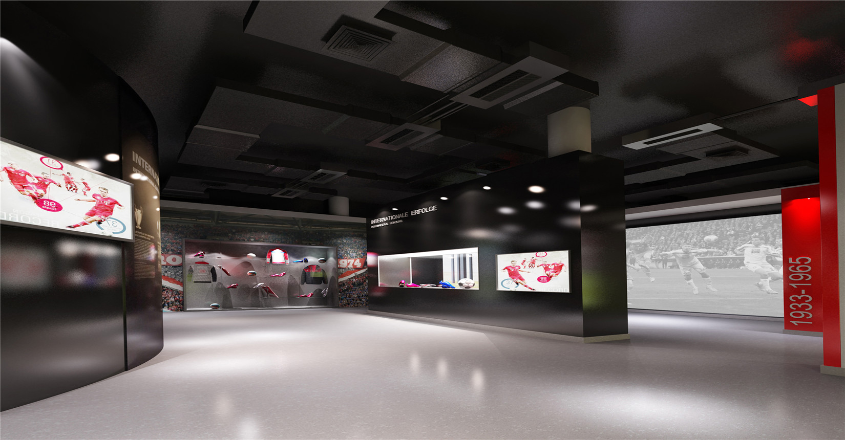 本次設(shè)計方案運用后現(xiàn)代主義風格的設(shè)計手法來展現(xiàn)中德兩國足球運動的歷史及發(fā)展。迎合當前環(huán)境下中德兩國在足球產(chǎn)業(yè)方面進行的交流與合作,是中德體育促進足球培訓、商務推廣的窗口平臺,向人們展示足球精神的人文內(nèi)涵與魅力。